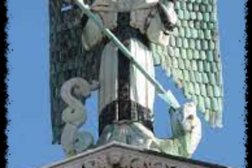 Un’altra leggenda popolare afferma che sull’anello al dito dell’Arcangelo sia incastonato un diamante o uno smeraldo, che brilla di sera. Tuttavia, diverse fonti mettono in dubbio non solo la presenza del diamante, ma anche la possibilità di vederlo brillare. Alcuni punti intorno alla piazza offrivano la visione dell’anello luminoso, ma nel corso dei secoli sono diventati inaccessibili a causa della costruzione di edifici.